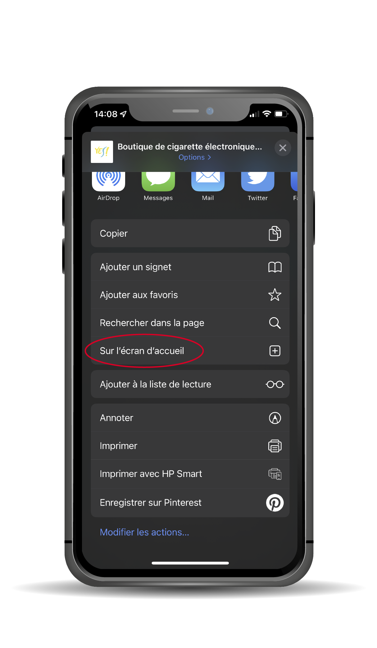 1. Rejoignez votre site de cigarette électronique préféré en saisissant l'adresse du site https://yesstore.fr dans la barre de navigation Safari de votre mobile.